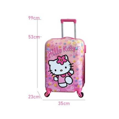 Built-in coded zip lock | 4 wheels | 53cm H x 31cm W x 22cm D | Volume: 42 Litres | Design: Hello Kitty
